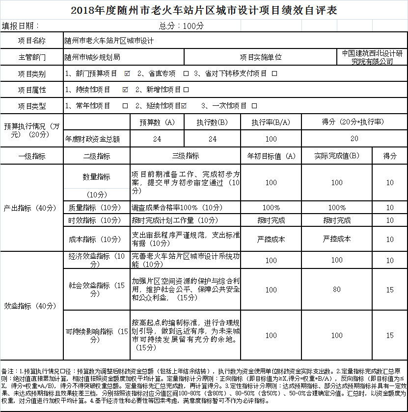 附件:《2018年度隨州市老火車站片區城市設計項目績效自評表》