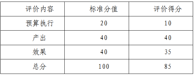 本單位2018年度整體支出績效評價總分為85分,評價得分具體情況如下: