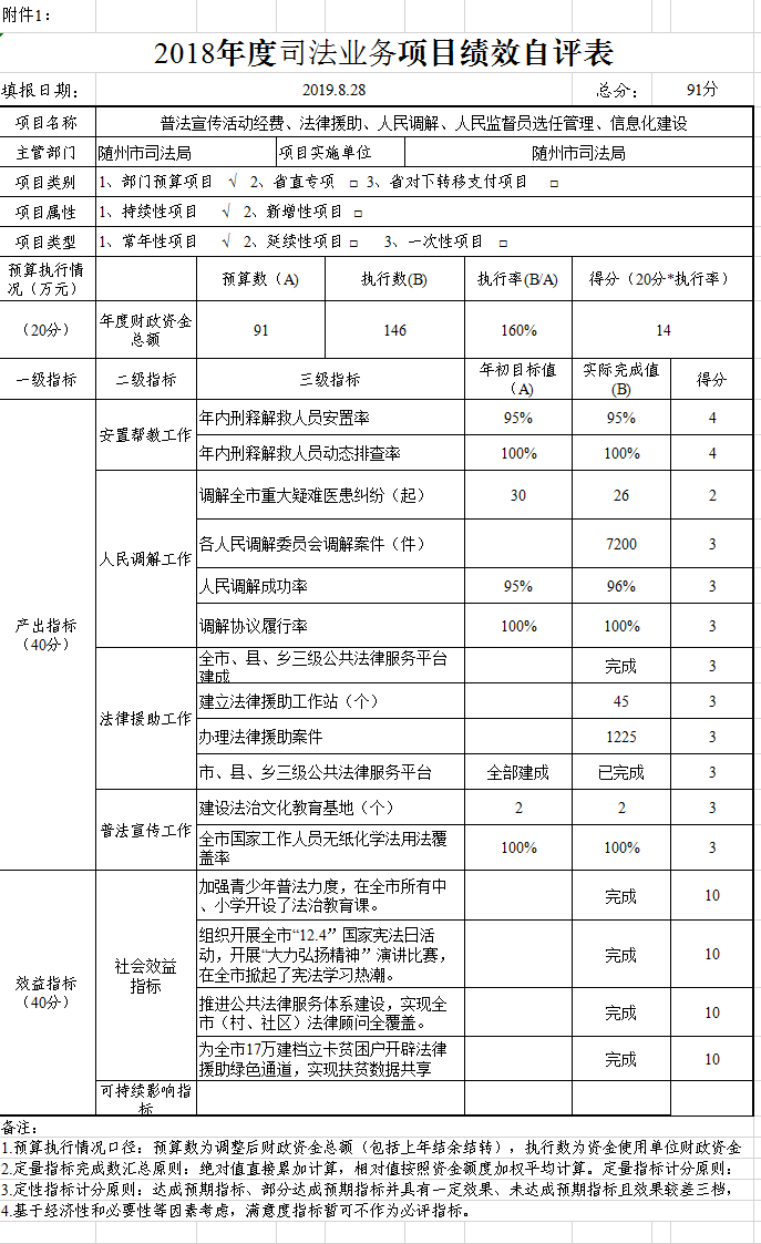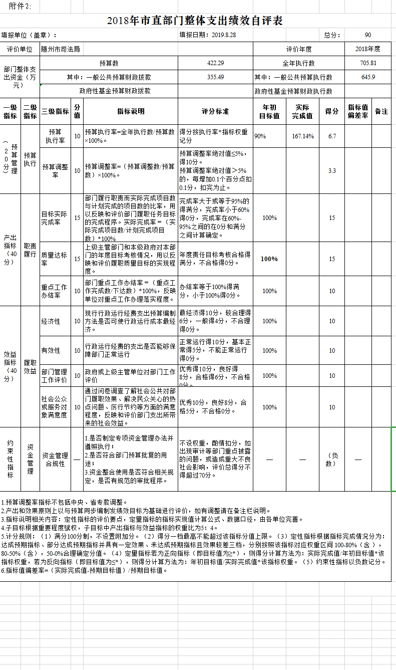 附件:《2018年度隨州市司法局整體支出績效自評表》