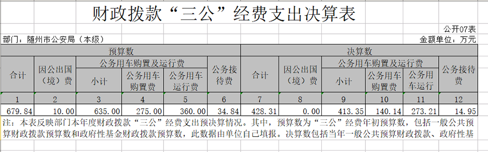 ??1、2018年隨州市公安局本級“三公”經(jīng)費預(yù)算支出679.84萬元,決算支出428.31萬元,決算數(shù)比預(yù)算數(shù)減少250.45萬元,減少36.9%。其中: