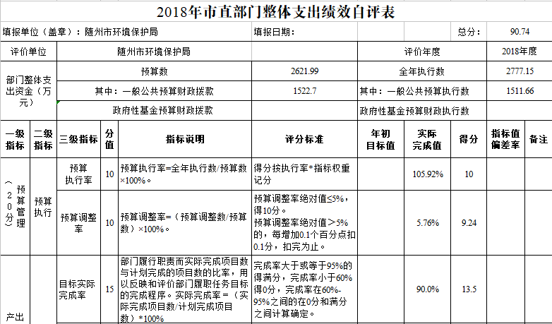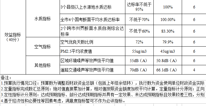 ①專項業務費項目績效自評:項目全年預算數為502.45萬元,執行數為302.53萬元,完成預算60.21%。主要產出和效果:一是空氣質量省定目標超額完成;二是水環境質量達到省考核要求;績效自評工作建議:進一步加大機關運轉經費保障,使各個專項工作目標的實現得到充分保障。