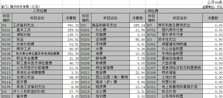 2018年環保局系統納入部門決算管理單位5個,分別為市環保局(含機動車排氣污染監督管理中心)、市環保局曾都分局、市環境監察支隊、市環境保護監測站、市環保局高新園區分局。本級單位行政人員編制18人,實有人員17人,離退休人數14人。市機動車排氣污染監督管理中心(與局機關統一核算)事業人員編制3人,實有人員3人。