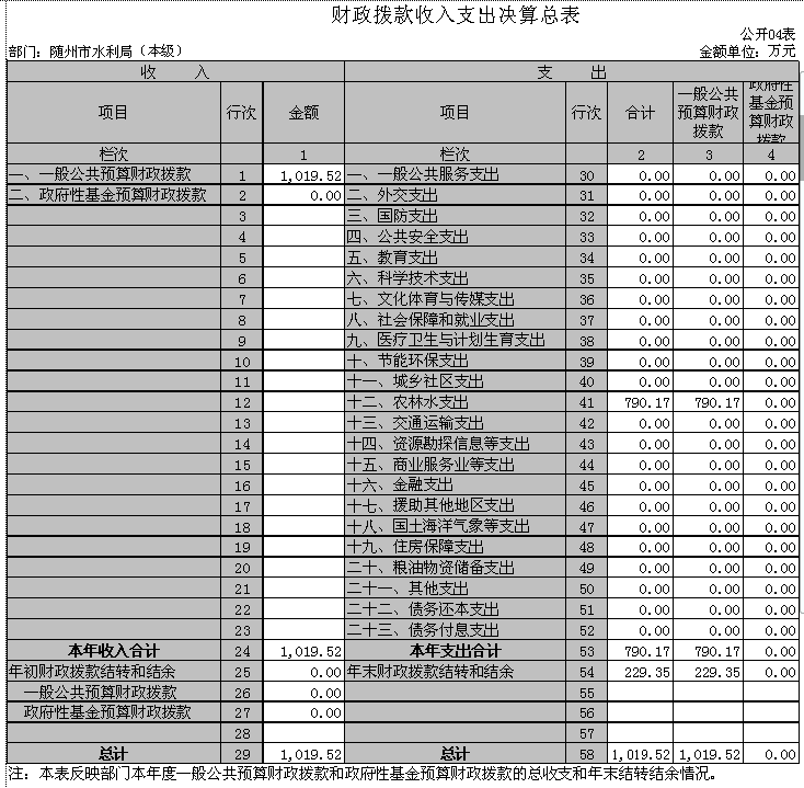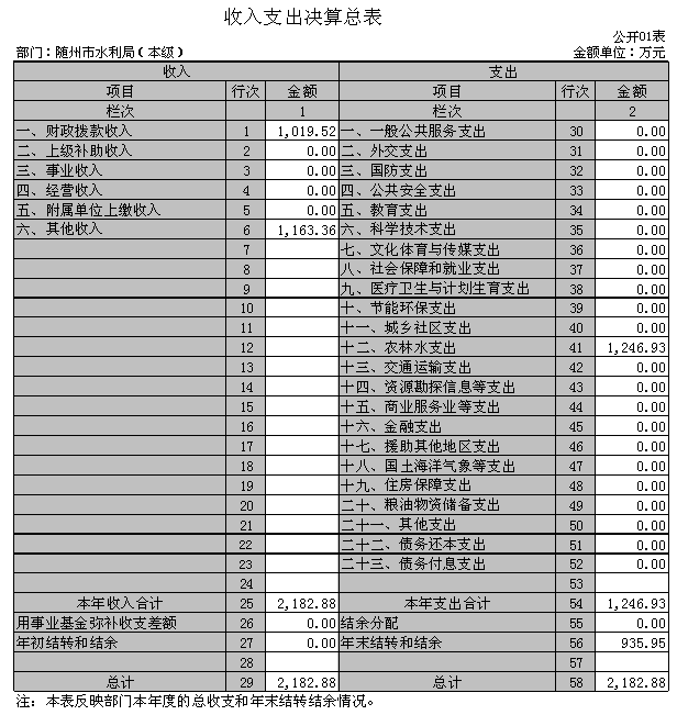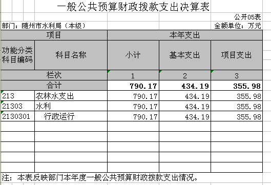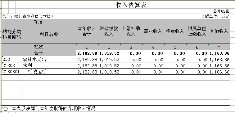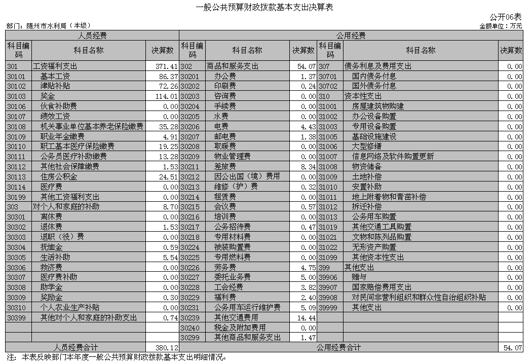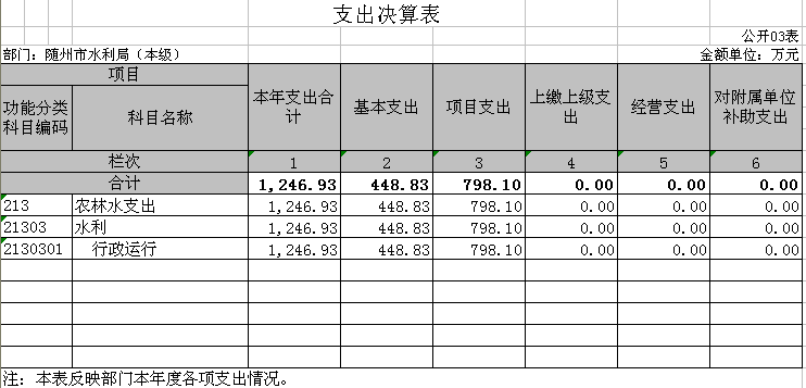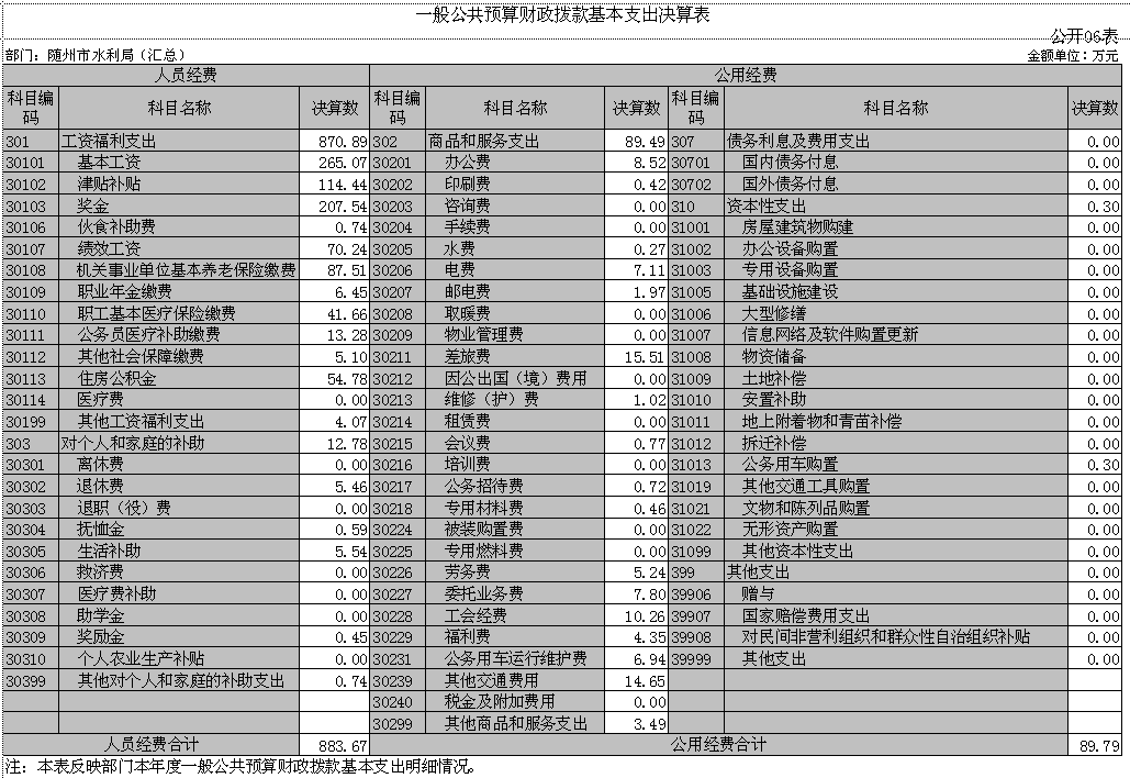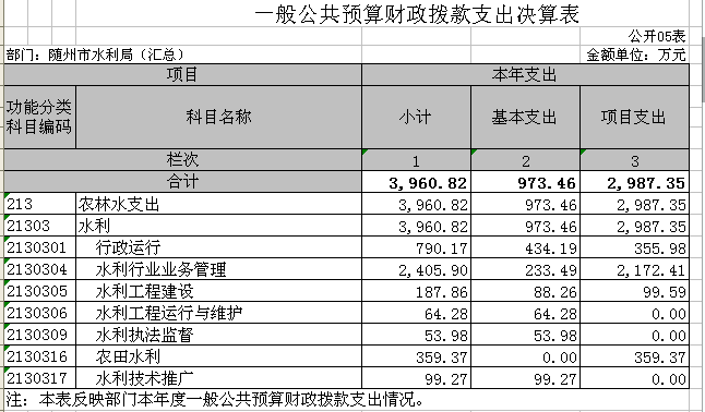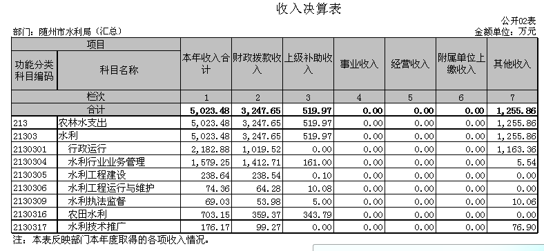 市水利系統納入決算管理的單位共6個,主要包括水利局機關、市白云湖水利工程管理局、市水政監察支隊、市水利科學技術推廣中心