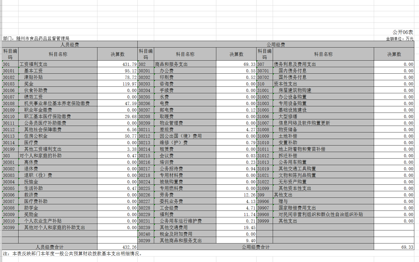 2018年度隨州市食品藥品監督管理局部門整體支出