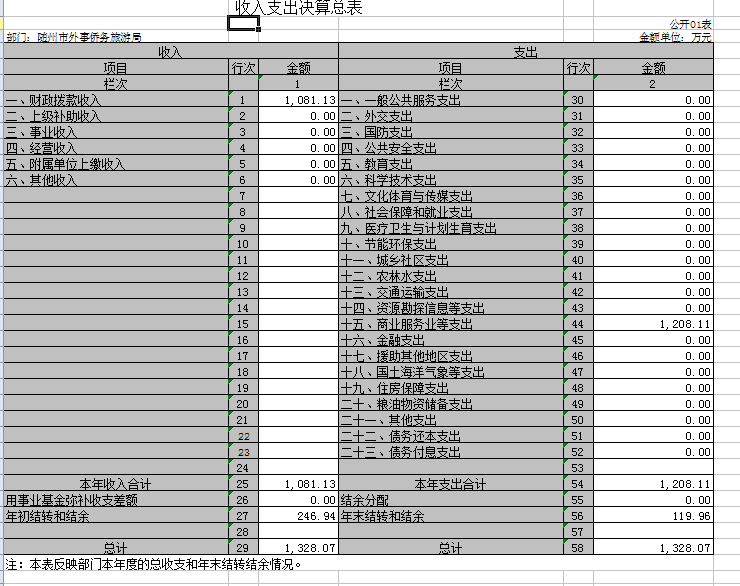 本年度收入1328.07萬元,其中財(cái)政撥款收入1081.13萬元,上年結(jié)轉(zhuǎn)246.94萬元。