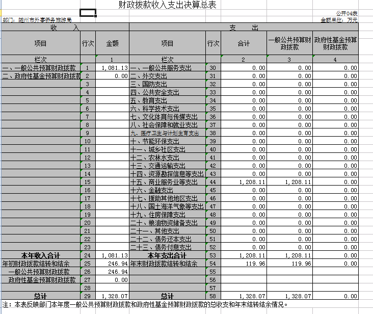 4、財(cái)政撥款收入支出決算總表(公開04表)