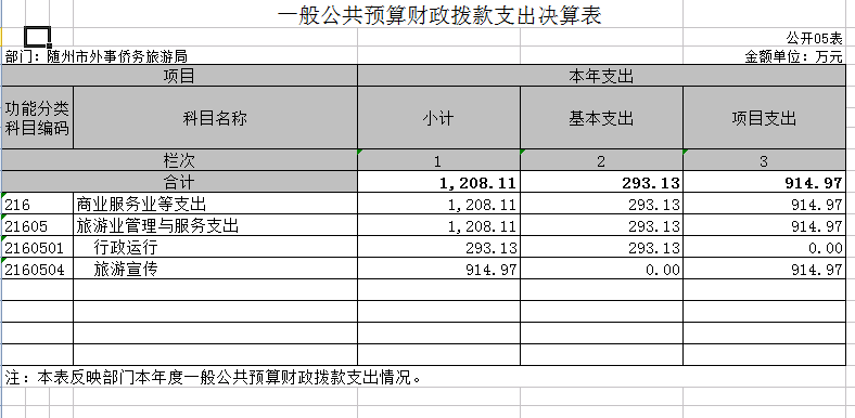 5、一般公共預(yù)算財(cái)政撥款支出決算表(公開05表)