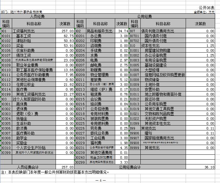 6、一般公共預(yù)算財(cái)政撥款基本支出決算表(公開06表)