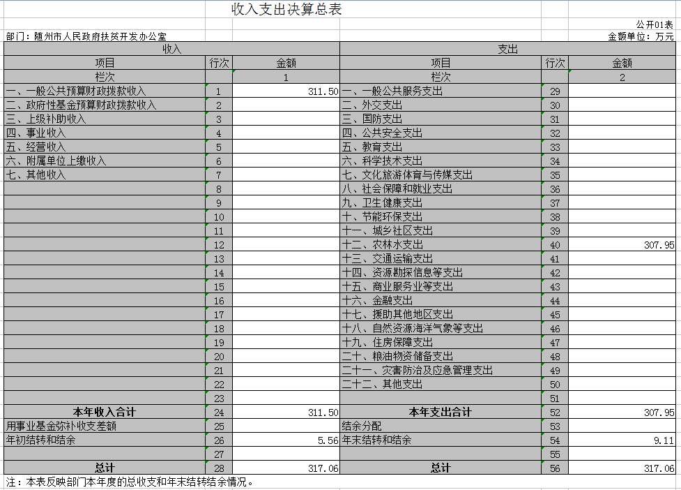 第三部分隨州市人民政府扶貧開發(fā)辦公室2019年部門決算公開表