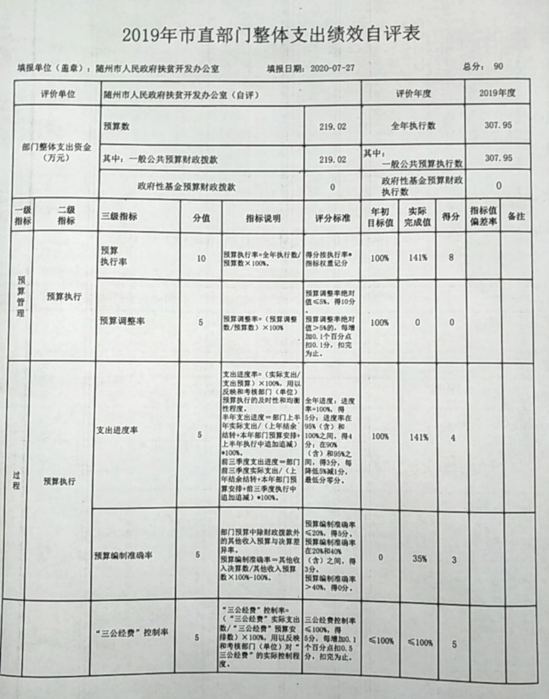 第四部分2019年度隨州市人民政府扶貧開發(fā)辦公室財政支出績效自評報告