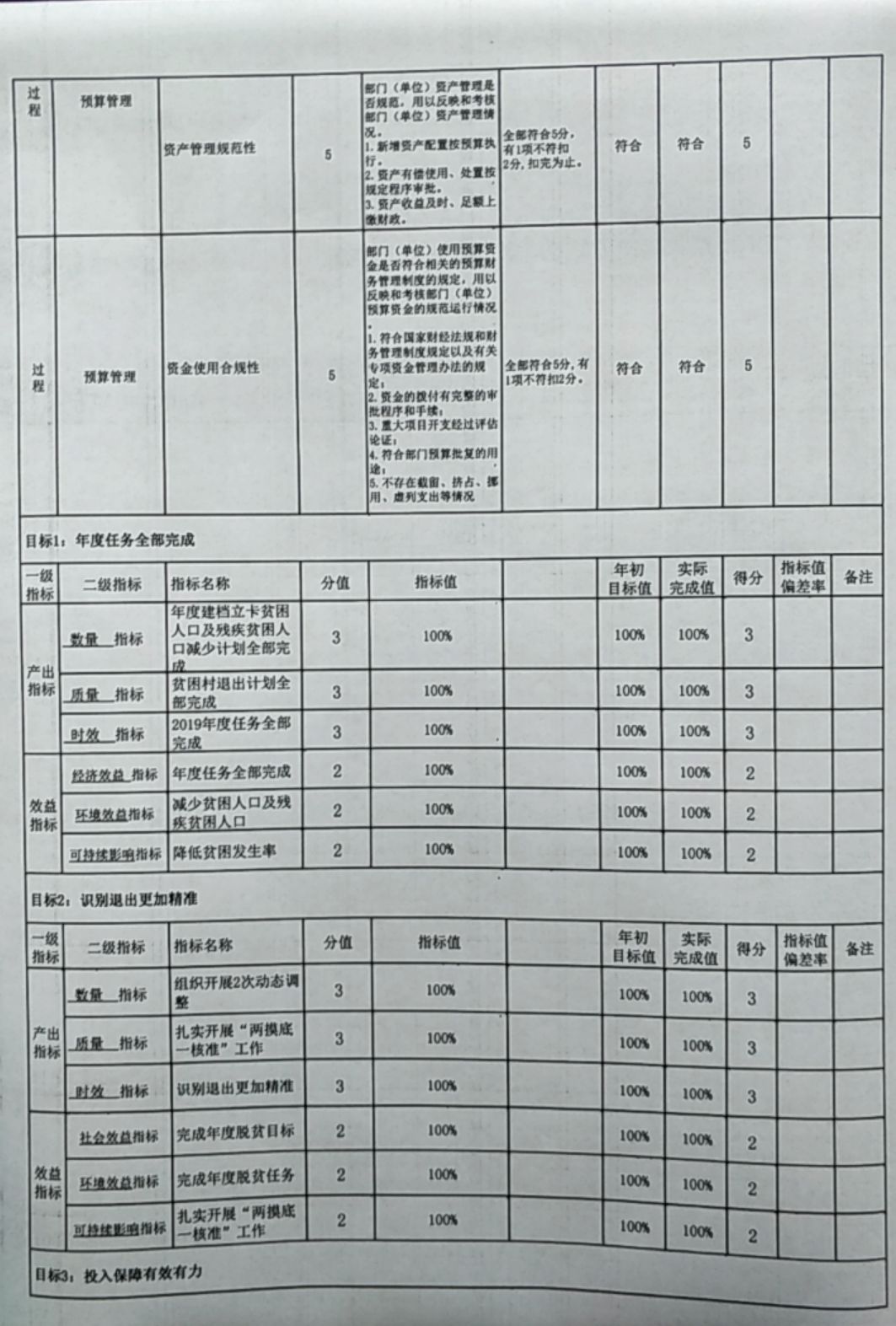 目標一:年度任務(wù)全部完成。一是年度建檔立卡貧困人口及殘疾貧困人口減少計劃全部完成。年初,省下達滾動計劃為43467人,實際完成43515人,占計劃100.1%,其中殘疾貧困人口脫貧9158人。二是貧困村退出計劃全部完成。年初,省下達滾動計劃為50個貧困村出列,實際完成50個,占計劃100%。