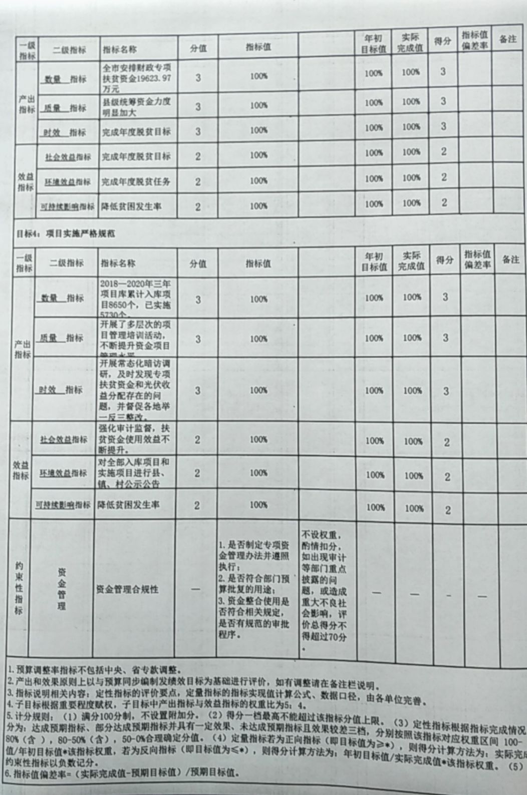 目標四:項目實施嚴格規(guī)范。一是強化培訓(xùn)引導(dǎo)。舉辦了全市扶貧資金項目管理、產(chǎn)業(yè)扶貧、光伏扶貧專題培訓(xùn)班,由6位來自基層一線的扶貧干部授課,進一步強化扶貧資金項目管理。各縣市區(qū)均開展了多層次的項目管理培訓(xùn)活動,不斷提升資金項目管理水平。二是強化項目規(guī)范。2018—2020年三年項目庫累計入庫項目8650個,已實施5730個,其中2019年實施1508個。印發(fā)了《關(guān)于進一步做好脫貧攻堅項目庫建設(shè)的通知》等文件,不斷推動各地精準謀劃項目、精準實施項目、精準監(jiān)管項目。三是強化督促檢查。落實公告公示制度,對全部入庫項目和實施項目進行縣、鎮(zhèn)、村公示公告。開展常態(tài)化暗訪調(diào)研,及時發(fā)現(xiàn)專項扶貧資金和光伏收益分配存在的問題,并督促各地舉一反三整改。強化審計監(jiān)督,扶貧資金使用效益不斷提升。