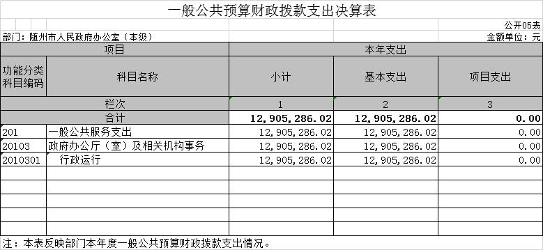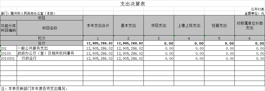 2.行政運行:反映行政單位(包括實行公務員管理的事業單位)的基本支出。