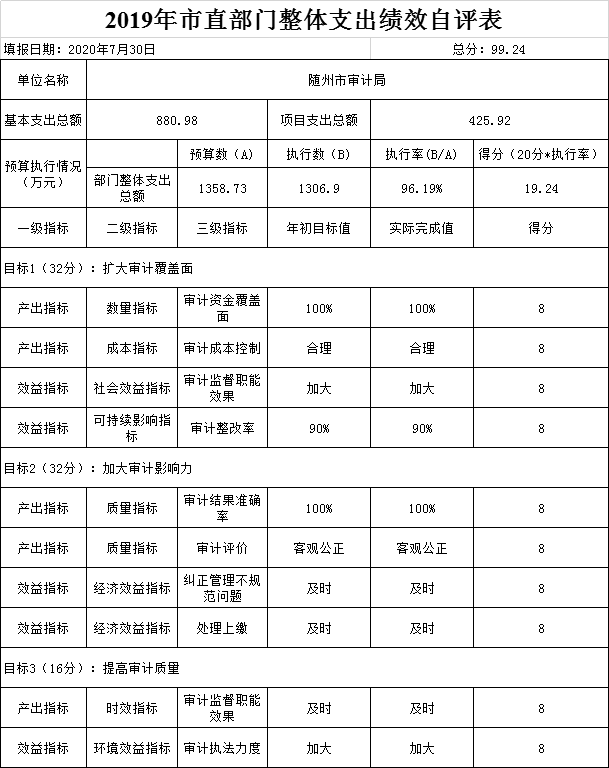 附件:2019年度隨州市審計局整體支出績效自評表