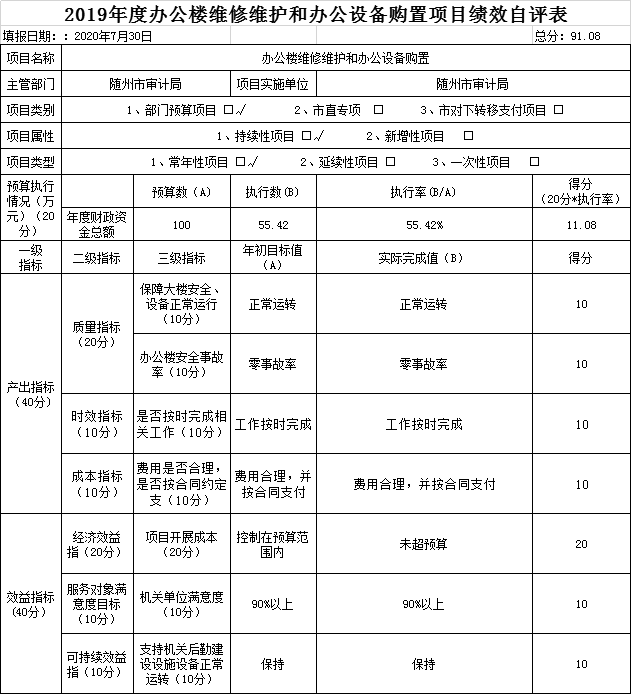 4.辦公樓維修維護和辦公設備購置項目績效自評: