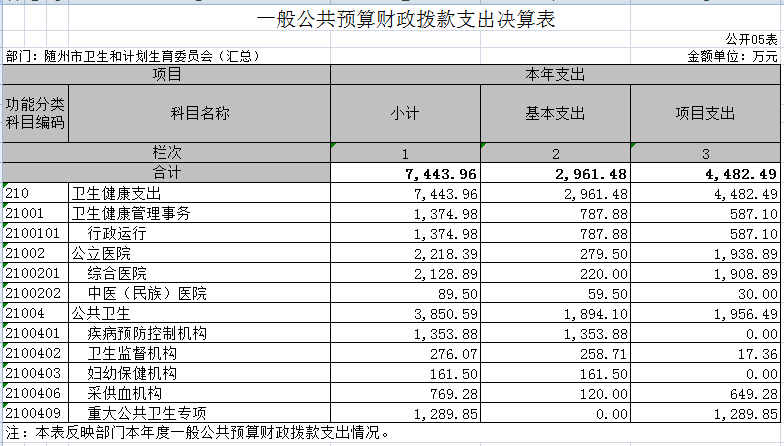 根據《市財政局關于批復2019年度部門決算的通知》(隨財函〔2020〕170號)和《市財政局關于做好2019年度市級部門決算信息公開工作有關事項的通知》(隨財函〔2020〕171號)文件精神,現將隨州市衛生健康委2019年部門決算情況說明如下: