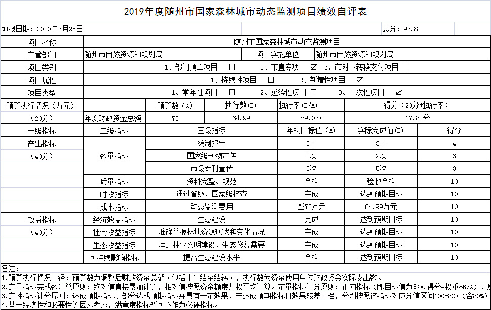 隨州市國家森林城市動態監測項目績效自評綜述: