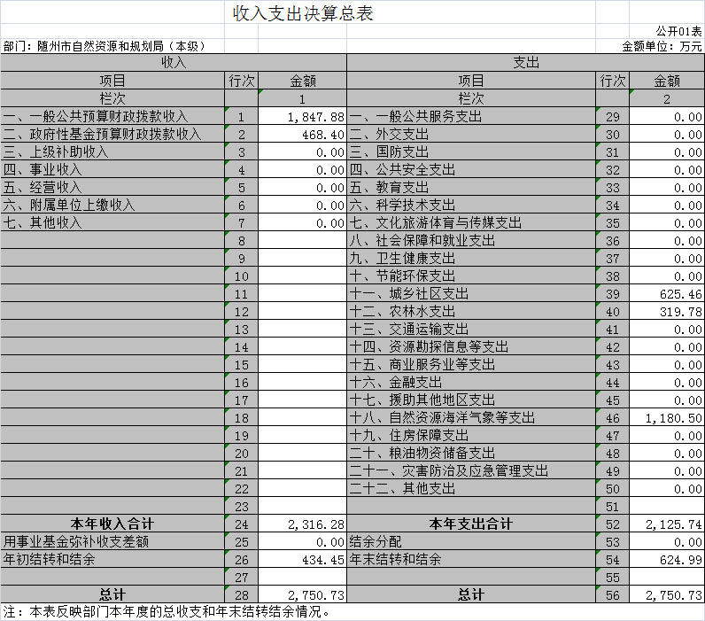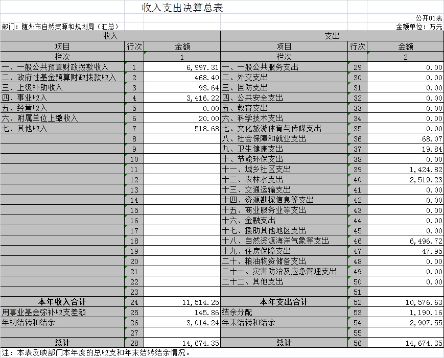 第四部分、隨州市自然資源和規劃局2019年部門決算表