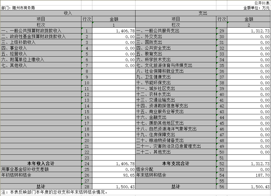 第三部分隨州市商務局2019年部門決算表