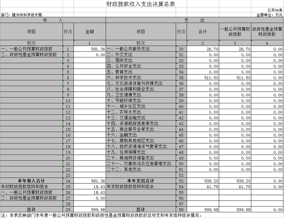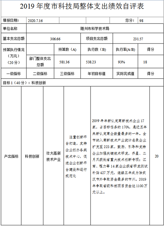 (1)隨州市科技局2019年度整體支出自評報(bào)告及績效自評表