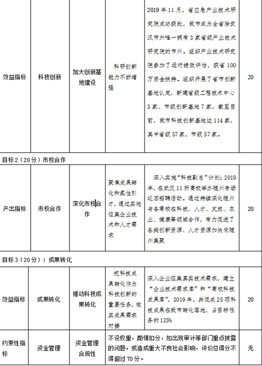 隨州市科技局科技事業(yè)費(fèi)項(xiàng)目2019年度績效自評報(bào)告