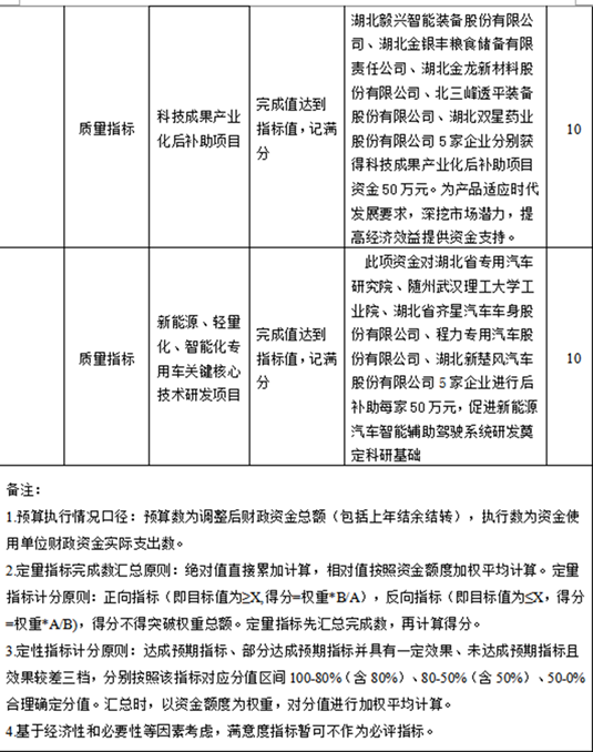 湖北省專用汽車研究院、隨州武漢理工大學(xué)工業(yè)院、湖北省齊星汽車車身股份有限公司、程力專用汽車股份有限公司、湖北新楚風(fēng)汽車股份有限公司5家企業(yè)對關(guān)鍵核心技術(shù)研發(fā)項(xiàng)目補(bǔ)貼資金250萬元(每家50萬元)滿意,此項(xiàng)資金促進(jìn)了關(guān)鍵核心技術(shù)研發(fā)項(xiàng)目的人才培養(yǎng)、研發(fā)基地建設(shè)等。
