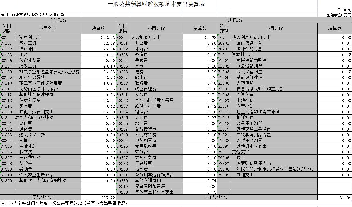 第四部分? 隨州市政務服務和大數據管理局2019年決算表