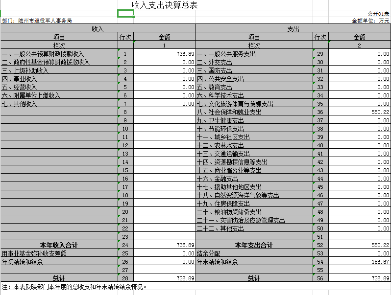 2019年度財政撥款收入736.89萬元,財政撥款支出550.22萬元,年末財政撥款結轉和結余186.67萬元。我局為新成立單位,無上年度收支決算數據。