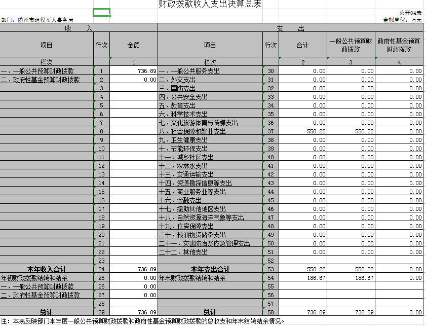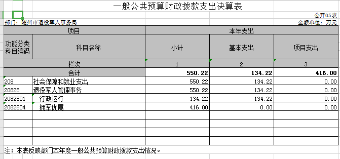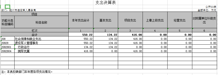 第三部分 隨州市退役軍人事務局2019年部門決算公開表