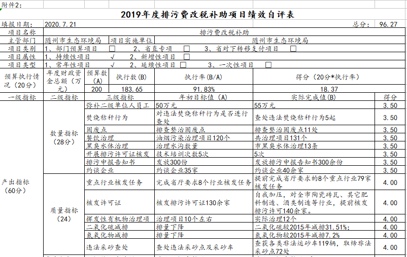 附件:《2019年度排污費改稅補助項目績效自評表》