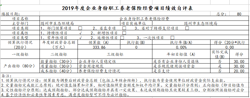 附件:《2019年度企業身份人員職工養老保險經費項目績效自評表》