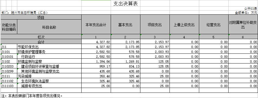??2019年局系統匯總決算支出總計4327.82萬元,其中本年支出2173.85萬元,項目支出2153.97萬元。比上年決算支出減少837.64萬元,減幅16.22%。主要原因是節能環保支出和上級專項“以獎代補”資金項目撥付資金減少。