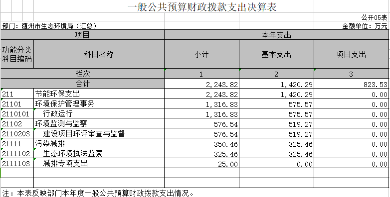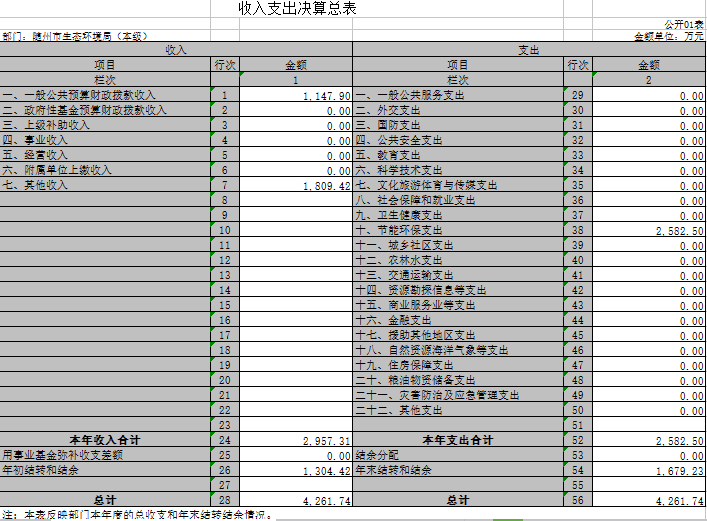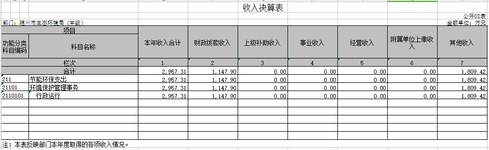 第二部分隨州市生態環境局2019年部門決算情況說明