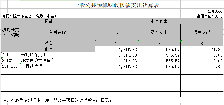 第二部分??隨州市生態環境局2019年部門決算情況說明