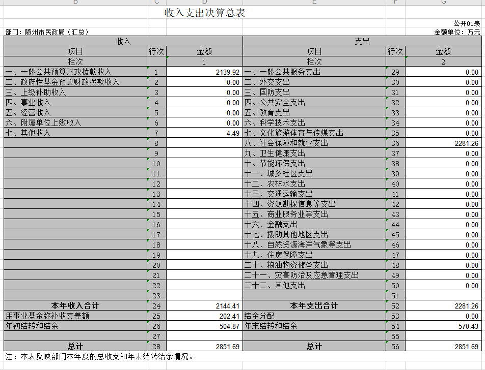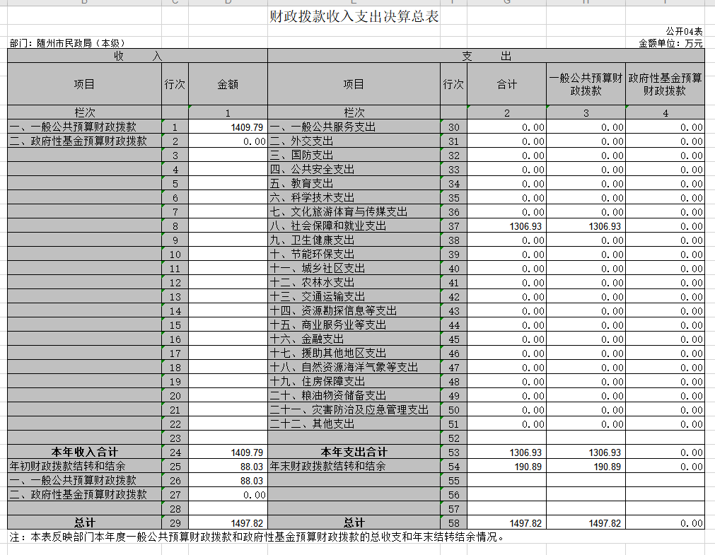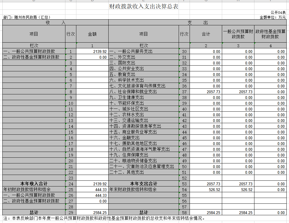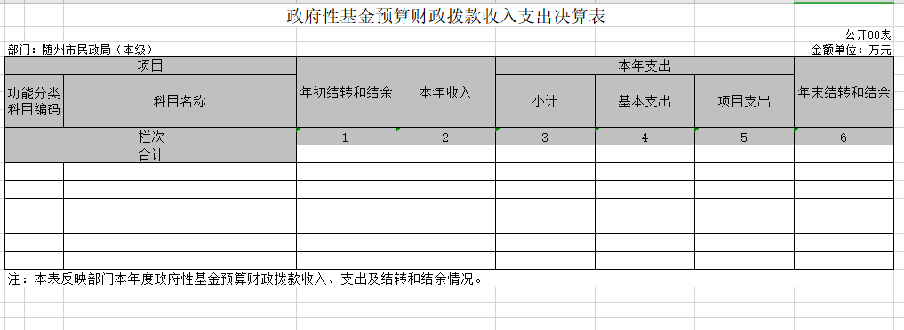 ? 本年度隨州市民政局(匯總)及隨州市民政局(本級)無政府性基金預決算收支情況。