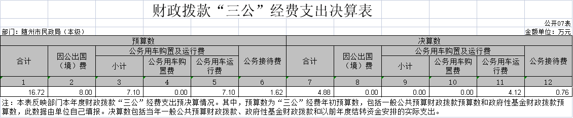 ? 七、一般公共預算財政撥款“三公”經費支出決算表