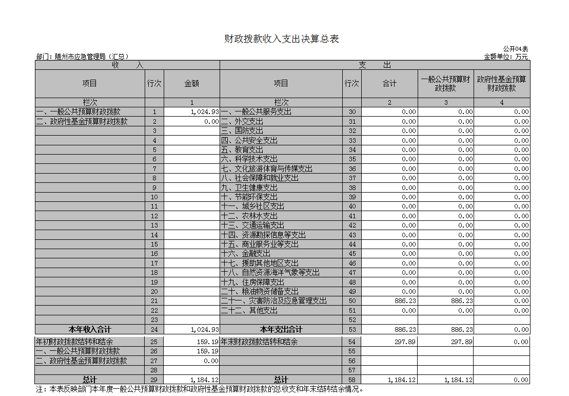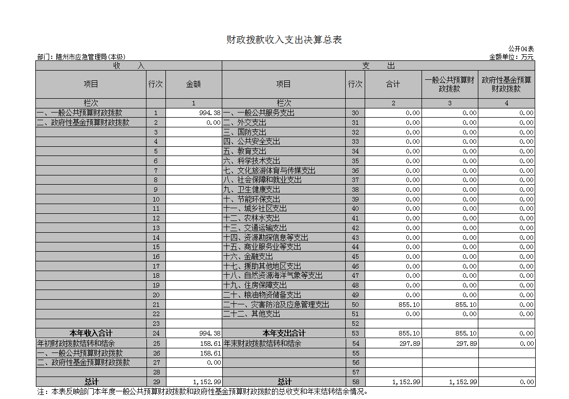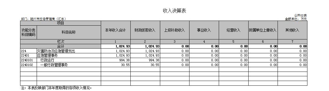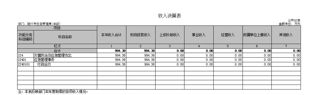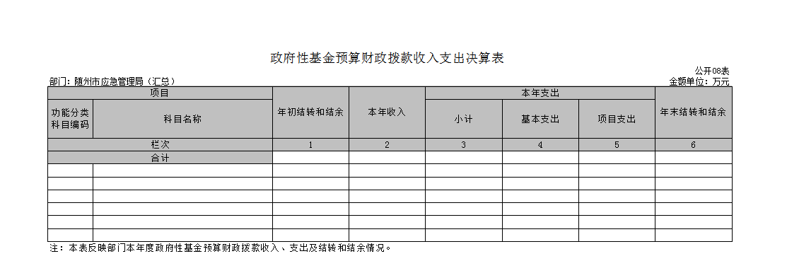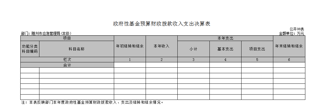 隨州市應急管理局(匯總)2019年度無政府性基金預算。