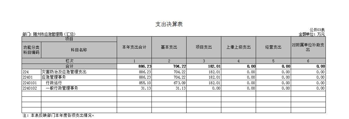 2、行政運行:反映行政單位(包括實行公務員管理的事業單位)的基本支出。