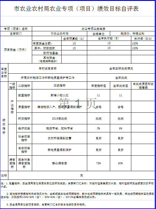 根據預算績效管理要求,本部門組織對2019年度一般公共預算項目支出全面開展績效自評,共涉及項目1個,資金15萬元,支出15萬元,從評價結果來看項目績效評價綜合成績優良,經濟和社會效益良好,財政項目支出合理、規范、有效。