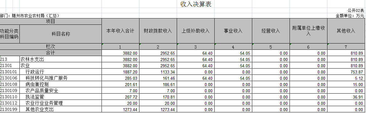 因機構改革2019年隨州市農業局更名為隨州市農業農村局,納入部門預算管理的二級單位有六個,分別是隨州市畜牧獸醫局、隨州市經管局、隨州市農機局、隨州市水產局、隨州市蔬菜辦、隨州市農業行政執法支隊。