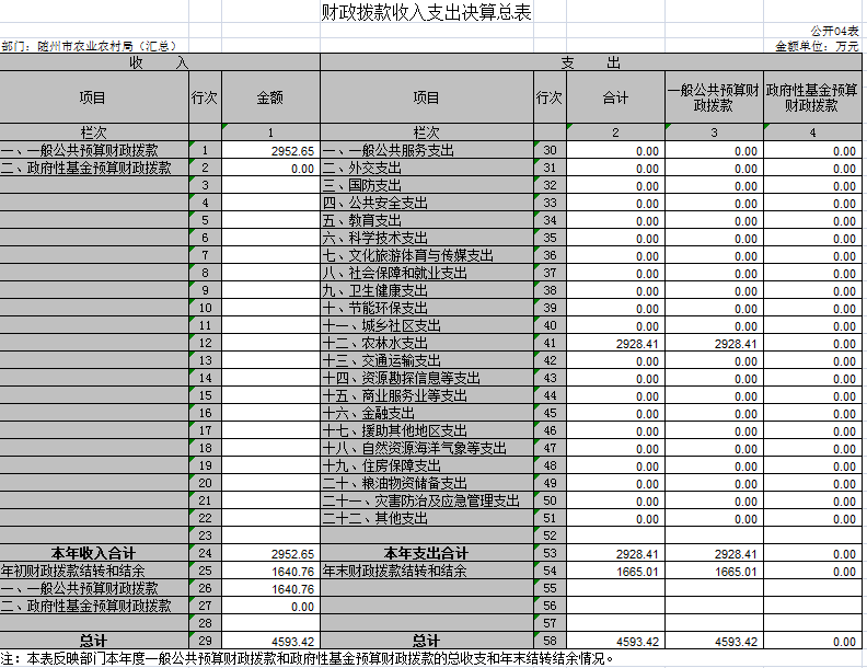 隨州市農業農村局(匯總)2019年無政府性基金預算和支出。