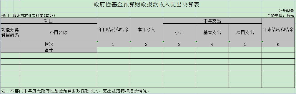 隨州市農業農村局(本部門)2019年無政府性基金預算和支出。