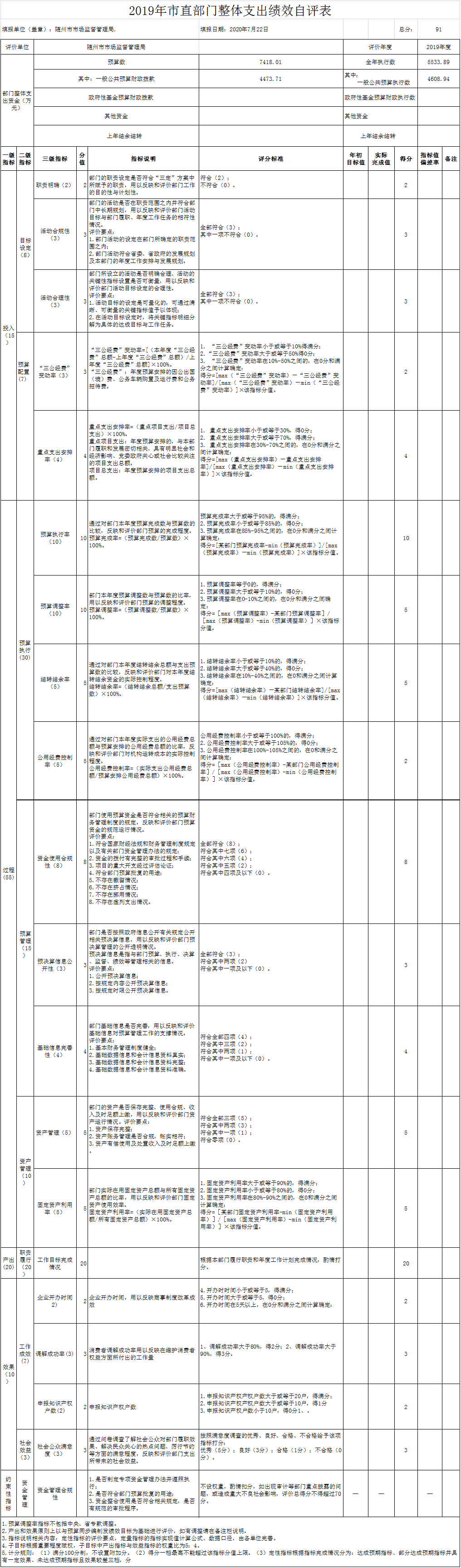 (一)預算績效管理工作開展情況。根據預算績效管理要求,本單位組織對2019年度一般公共預算項目支出全面開展績效自評,共涉及項目8個,資金1396.86萬元,占一般公共預算項目支出總額的91%。從績效目標設立情況來看,項目立項規范,指標設置合理,項目管理規范,制度執行有效。