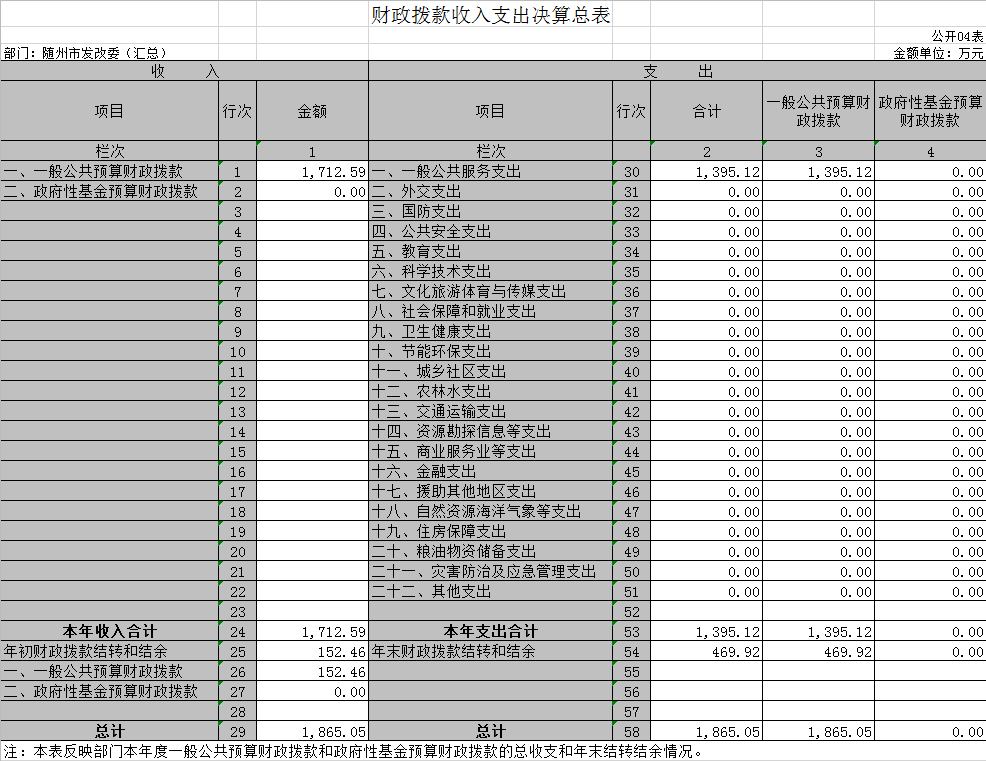 隨州市發(fā)展和改革委員會2019年部門決算公開(本級)