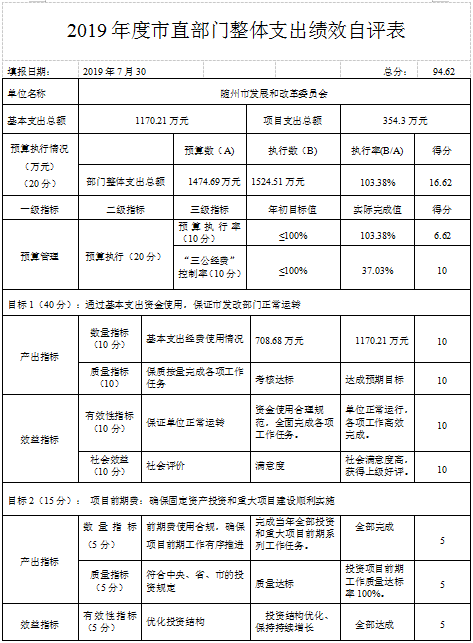 ????2、2019年部門整體支出績效自評表