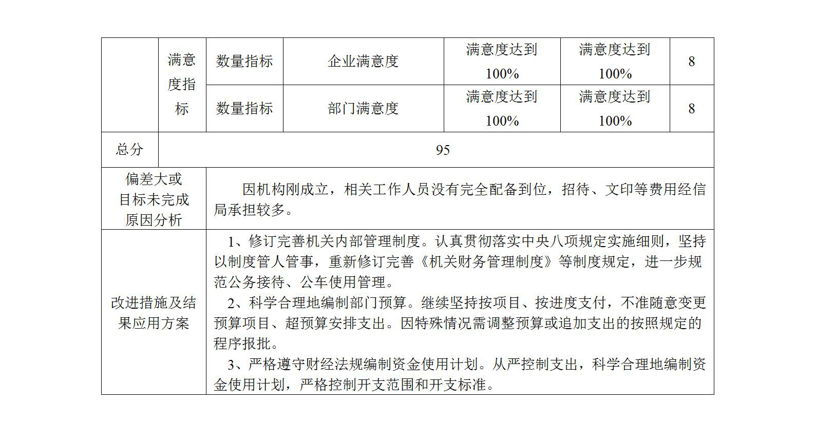 2、部門績效評價結果擬應用情況:加強項目規劃、績效目標管理、完善項目分配辦法和管理辦法、加強項目管理、結果與預算安排相結合。