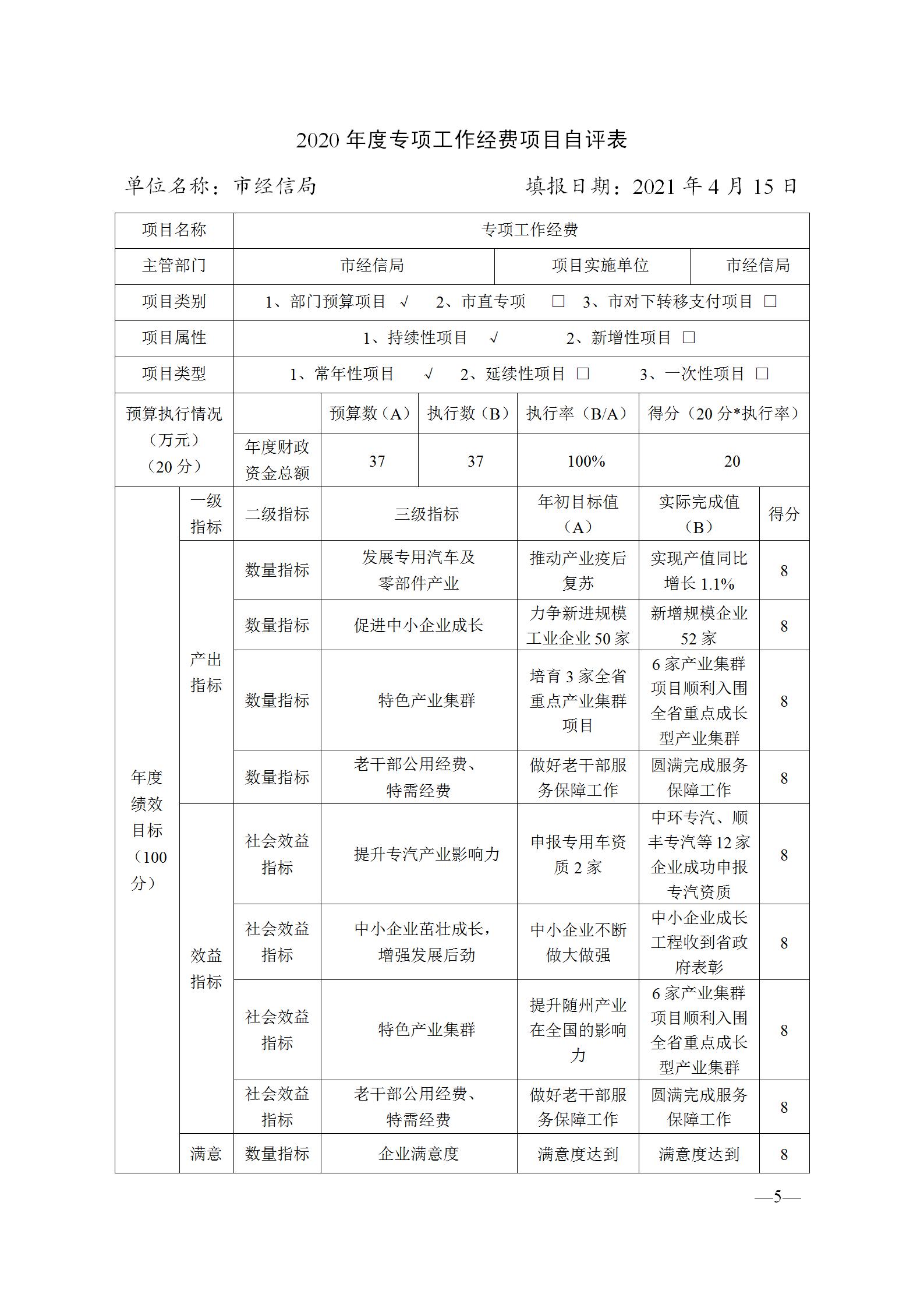 2、專項工作經費績效自評綜述:項目全年預算數為37萬元,執行數為37萬元,完成預算100%。