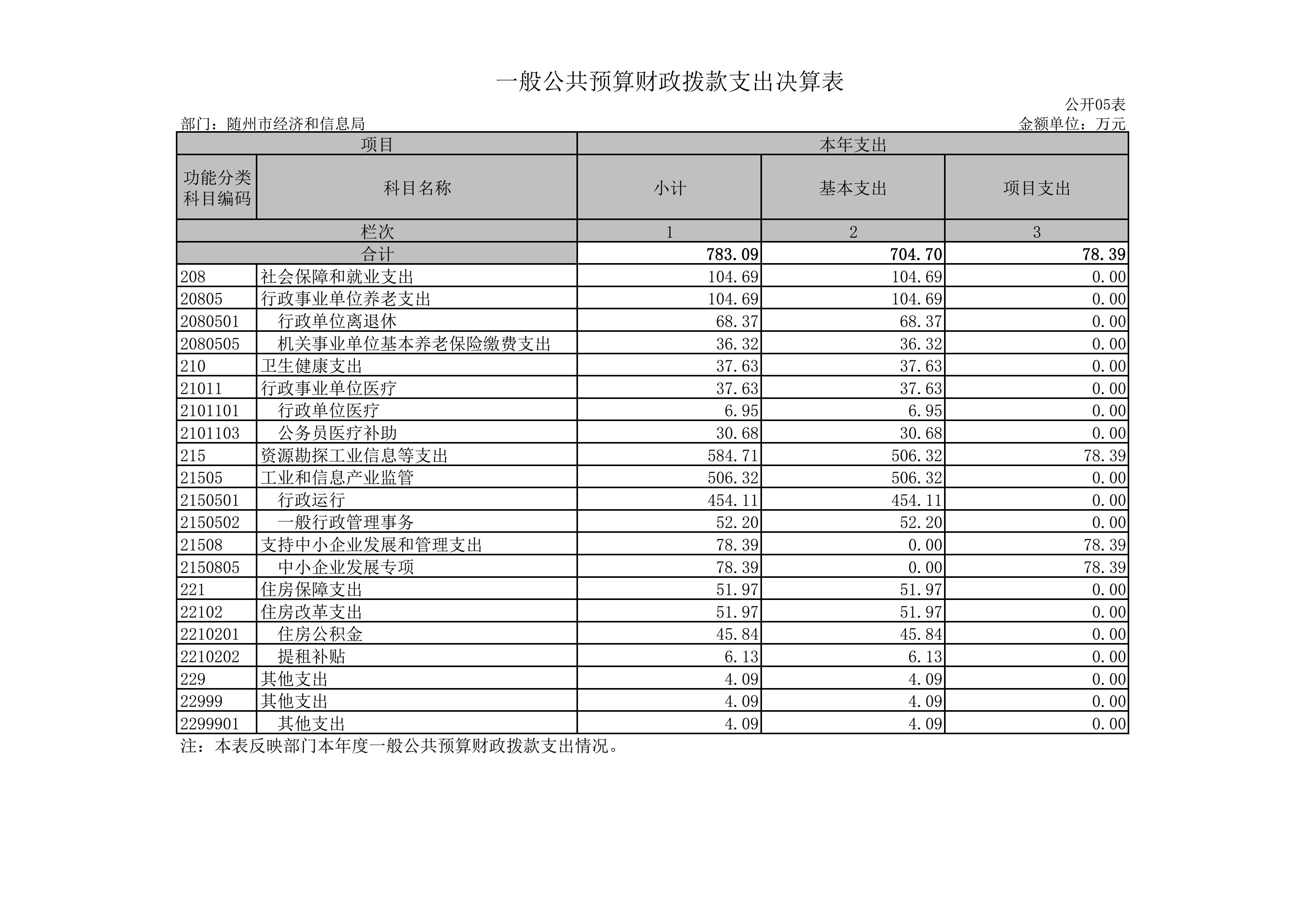 五、一般公共預算財政撥款支出決算表(公開表05表)