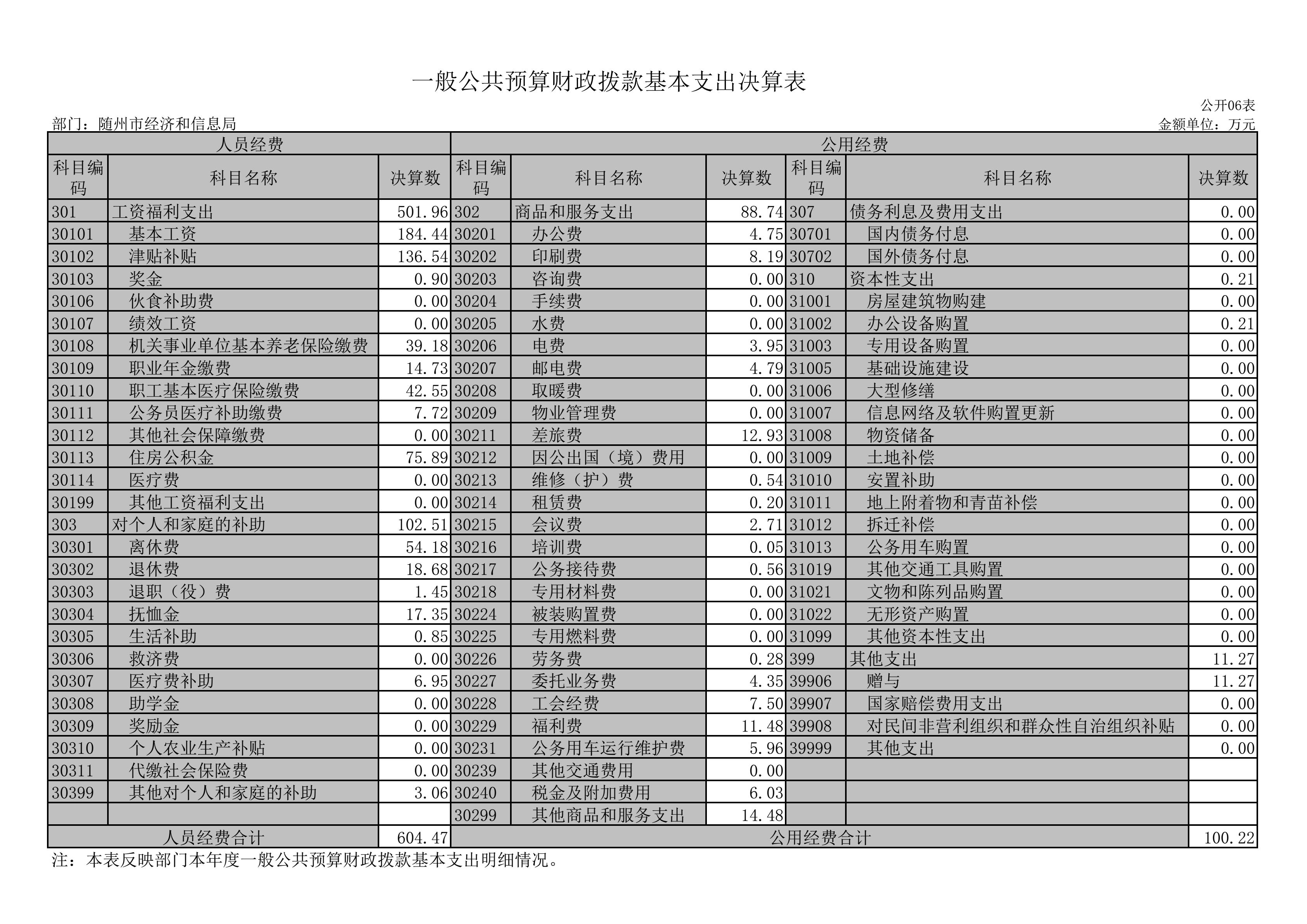 六、一般公共預算財政撥款基本支出決算表(公開表06表)