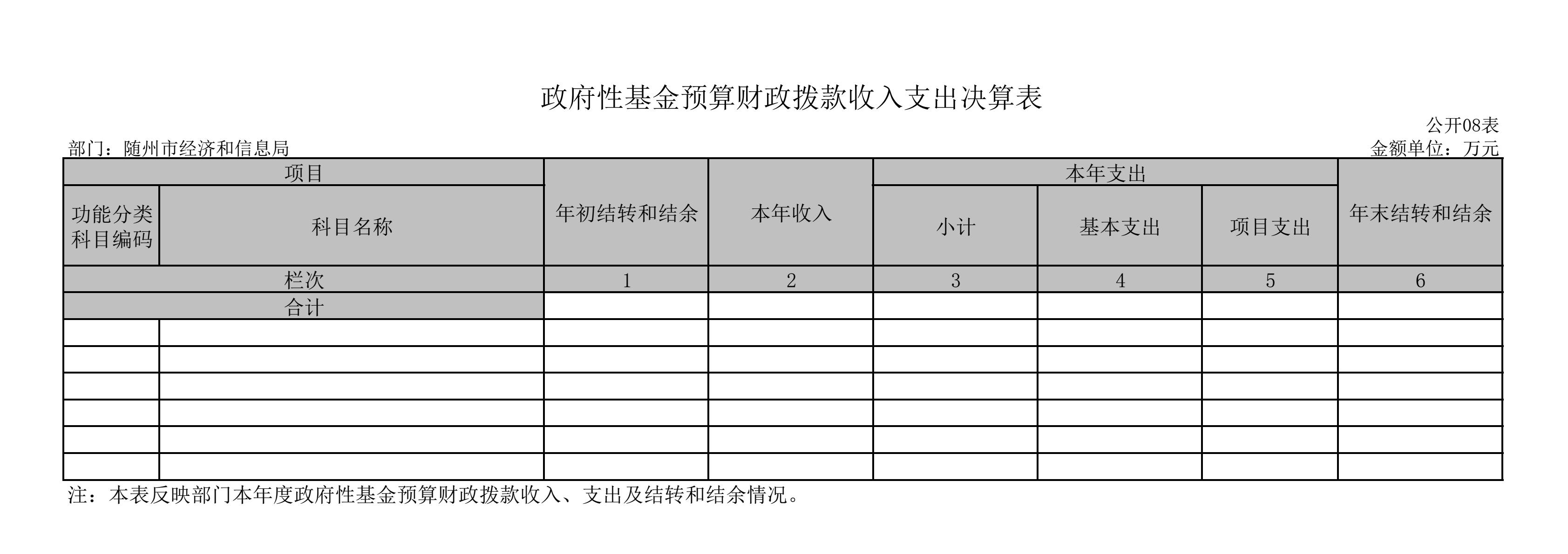 八、政府性基金預算財政撥款收入支出決算表(公開表08表)